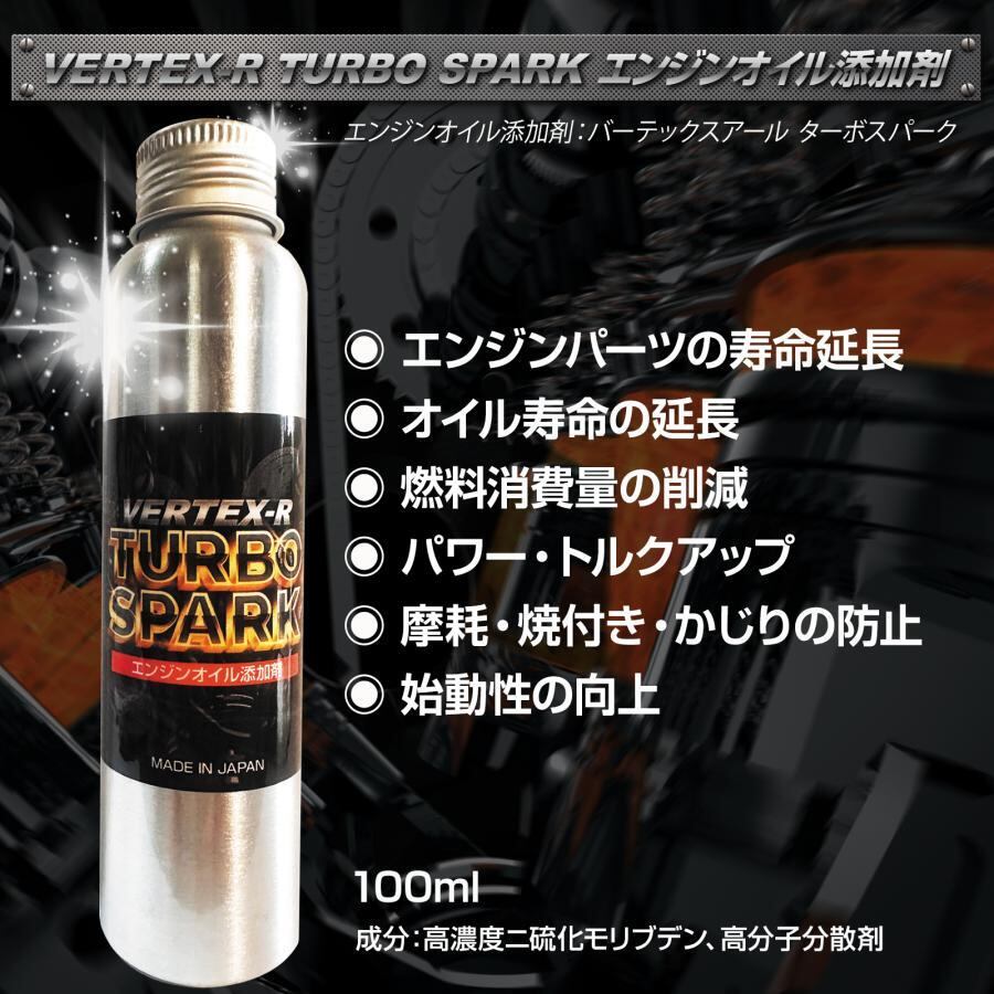 バーテックスR エンジンオイル添加剤ターボスパーク100ml オイル添加剤 車 燃費向上 燃費改善 最強 寿命延長