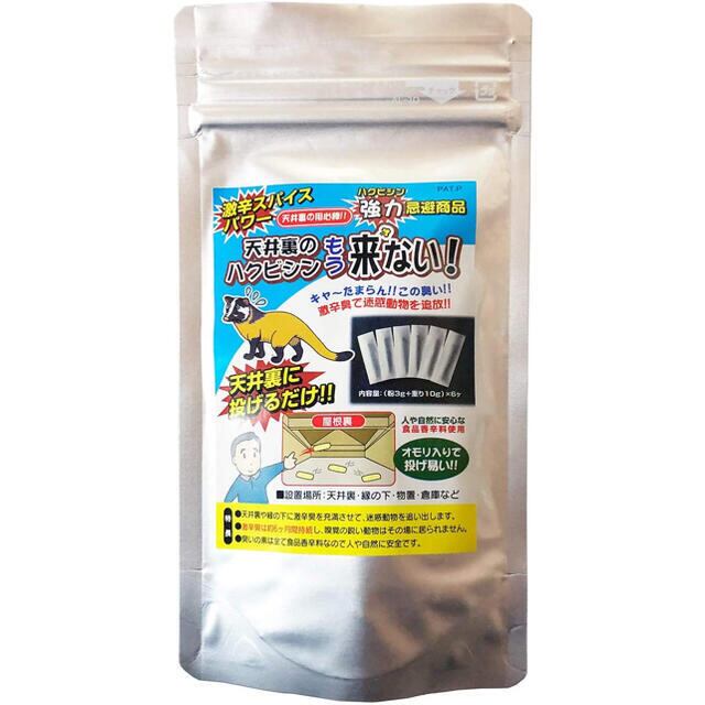 激辛スパイスの刺激で退散。天井裏や床下に放り投げるだけでOK!