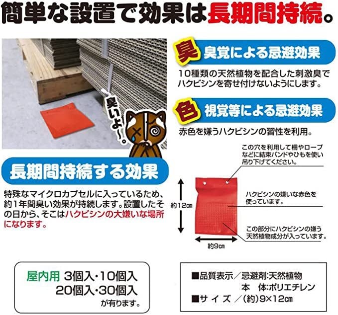撃退ハクビシン屋内用30個 強力タイプ 効果は驚きの1年間!ハクビシン 忌避剤